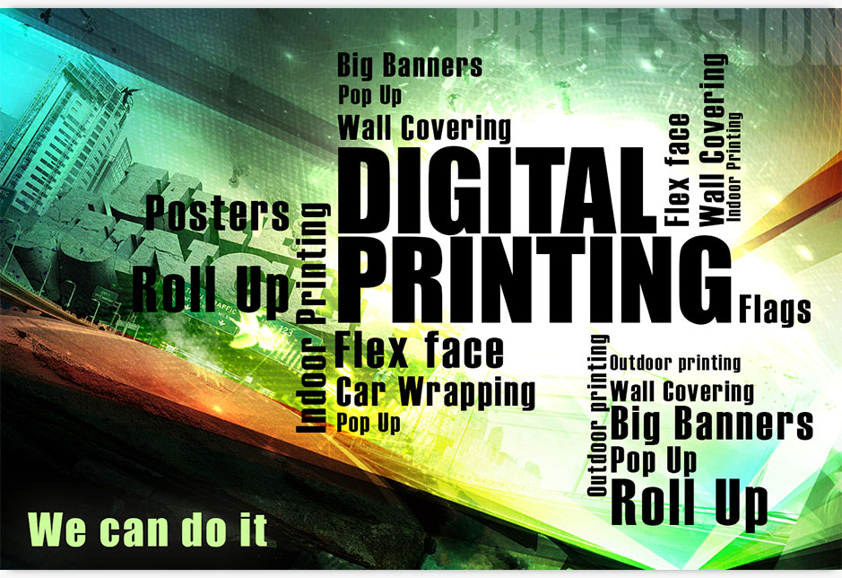 مجال آخر في الطباعه الرقمية هو تصميم اللوح الاعلانية الداخلية والخارجية